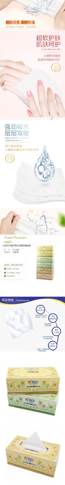 心相印/MindActUponMind ft18090 盒装抽取式面纸 三层90抽/盒 单位:盒