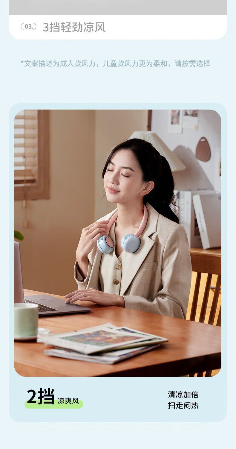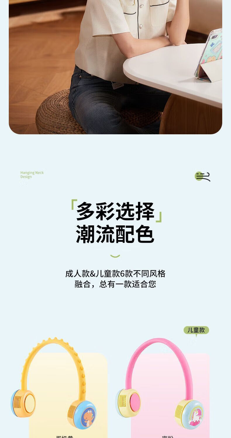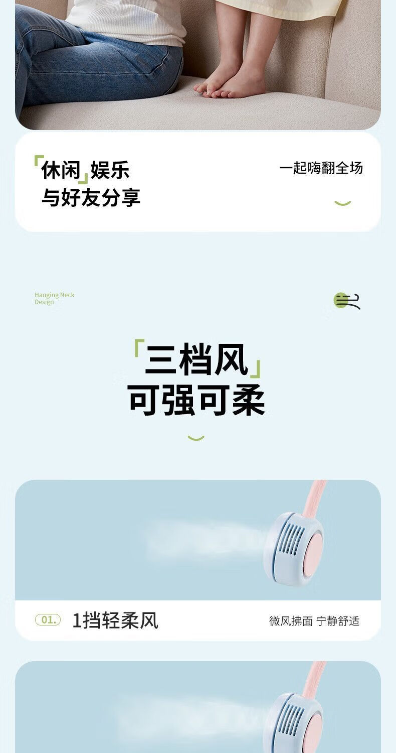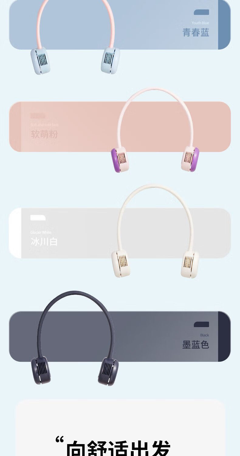 先锋 DGS-G17R风扇 挂脖风扇小型usb可充电便携懒人户外大风力制冷迷你电扇运动 极简白