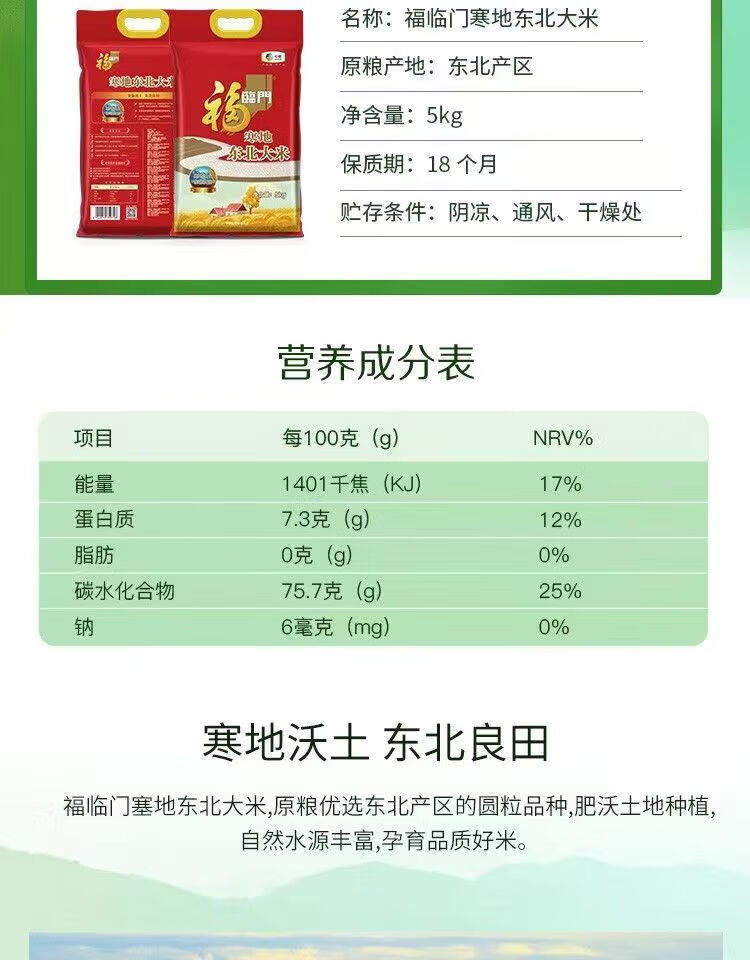 福临门 DBHD5 大米 福临门寒地东北大米5kg