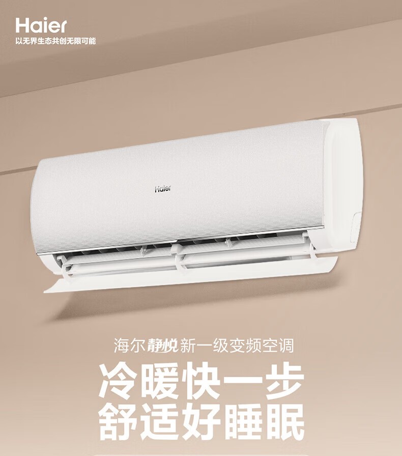 • 海尔/Haier KFR-35GW/B1KDA81U1 壁挂式空调 1.5匹 一级能效 静悦机皇+舒适静眠