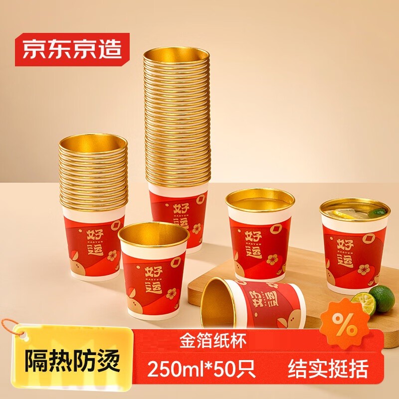 京东京造 250ml*50一次性杯子 金箔水杯250ml 50只