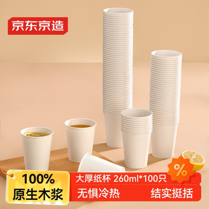 京东京造 260ml*100一次性杯子 加厚型办公家用接待水杯260ml