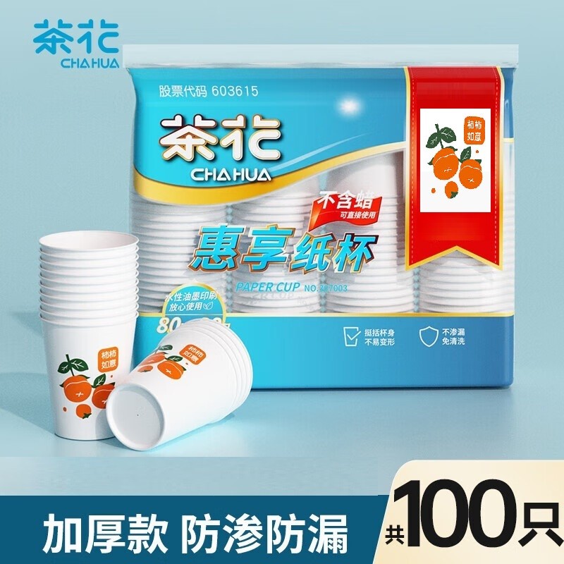 茶花/CHAHUA 218ml*100一次性杯子 原浆杯子PE淋膜杯家用结婚纸杯大号加厚商用100只218ml