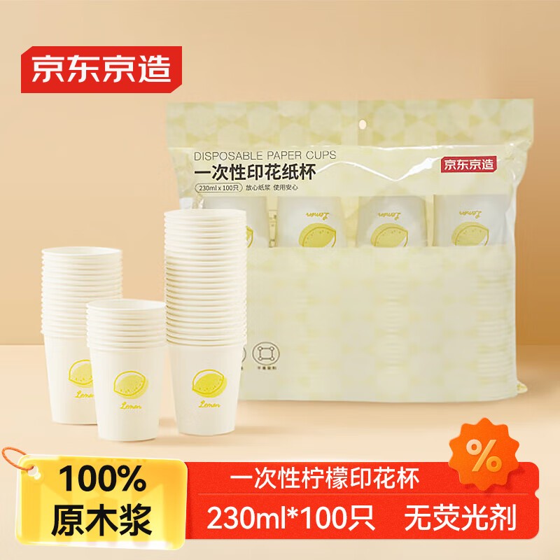 京东京造 230ml*100一次性杯子 加厚食品级办公商务家用水杯230ml 100只