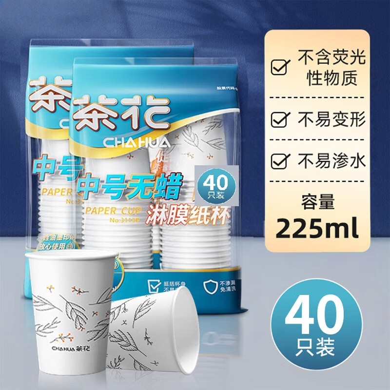 茶花/CHAHUA 225ml*40一次性杯子 加厚纸杯无蜡咖啡杯 225ml 40只