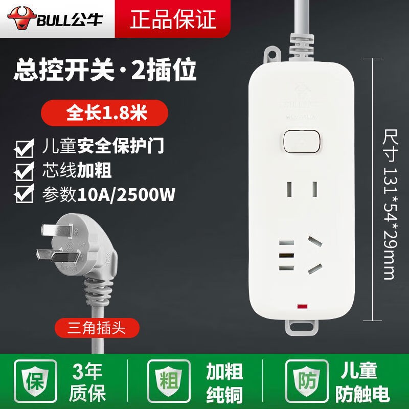 公牛/BULL S1110插座 白色插座带线插排 二插位全长1.8米