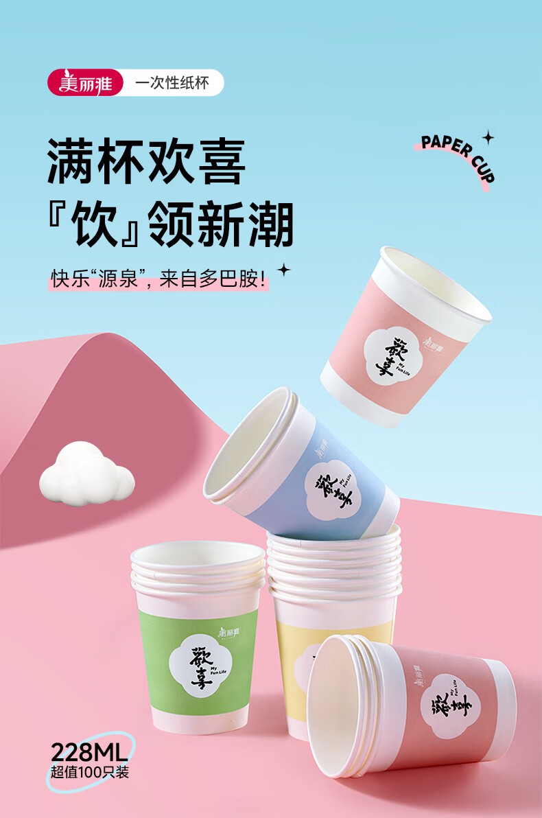 美丽雅 228ml*100一次性杯子 加厚228ml*100只 家用办公饮料果汁茶水杯