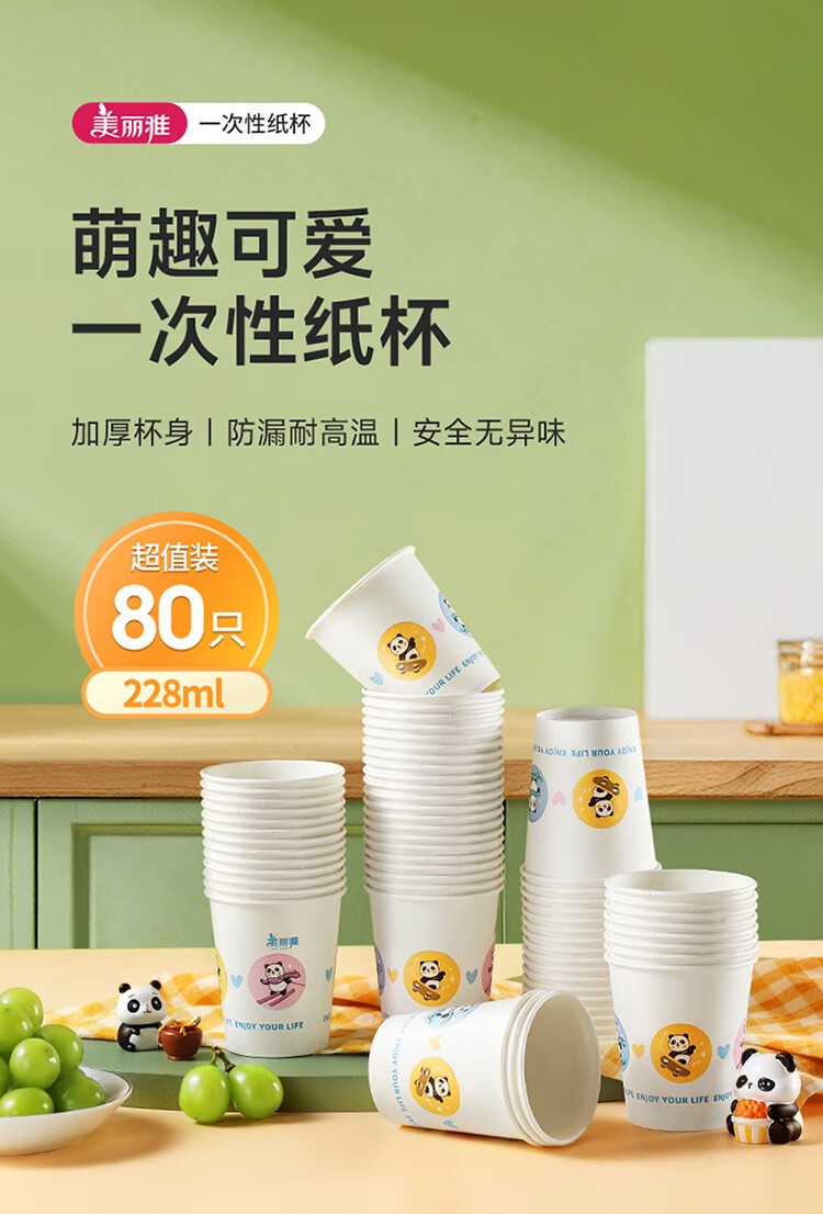 美丽雅 228ml*80一次性杯子 加厚228ml*80只 办公商务家用饮料果汁茶水杯