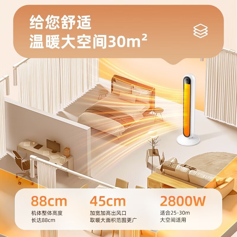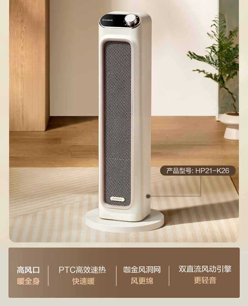 艾美特/Airmate HP21-K26取暖器 家用立式暖风机 奶咖系列-80°广域摇头
