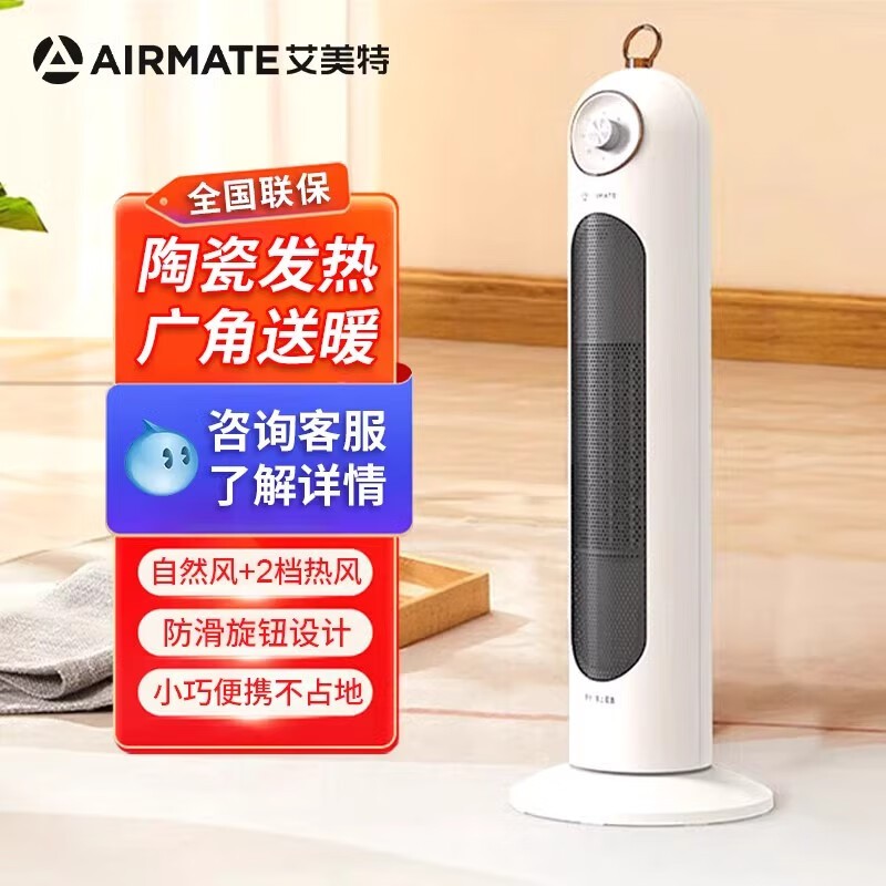 艾美特/Airmate HP21-K102取暖器 塔式暖风机 纯白机械式