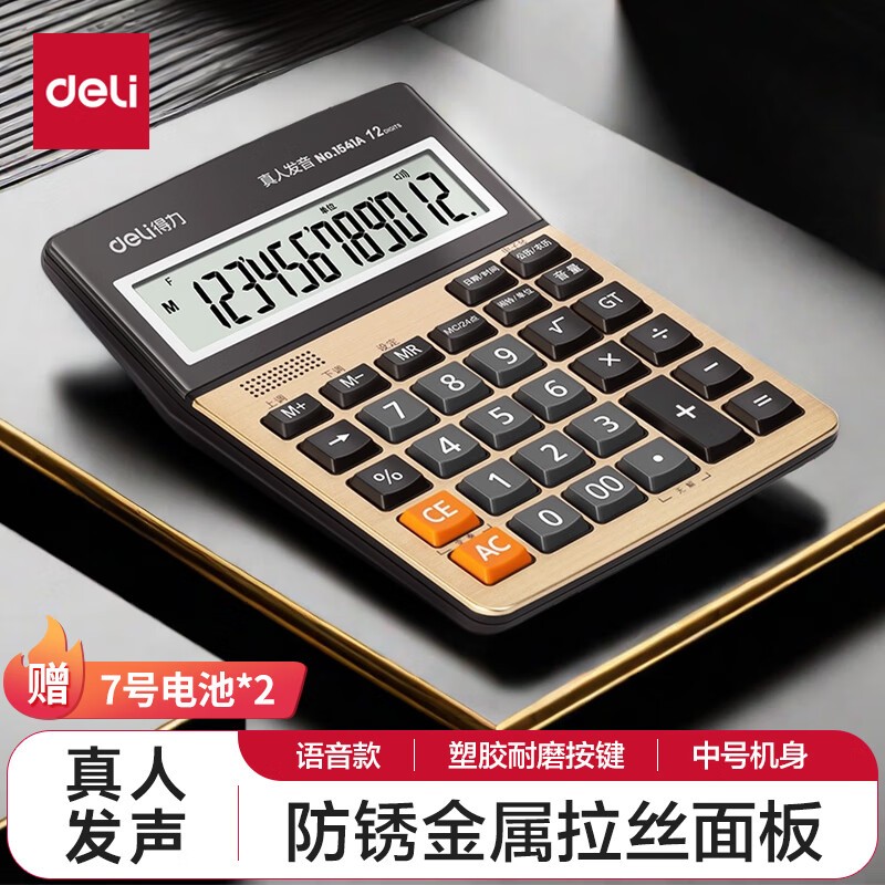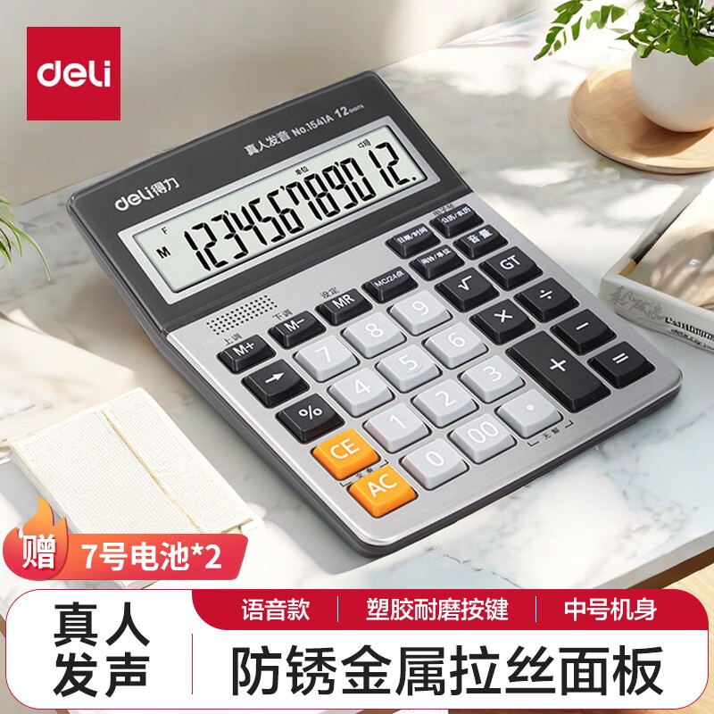 得力/deli 1541A 电子计算器 2位大屏幕语音计算器 闹钟日历功能语音