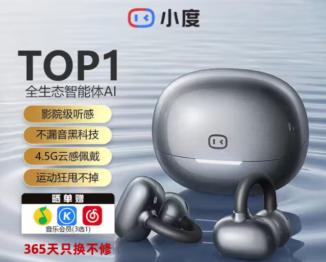 • 小度 G108 耳机/耳麦 骨传导概念不入耳运动AI通话降噪 黑色