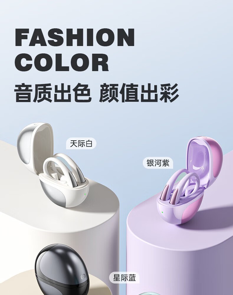 • 小度 S200 耳机/耳麦 蓝牙耳机挂耳式开放不入耳骨传导概念高音质运动防水 紫色