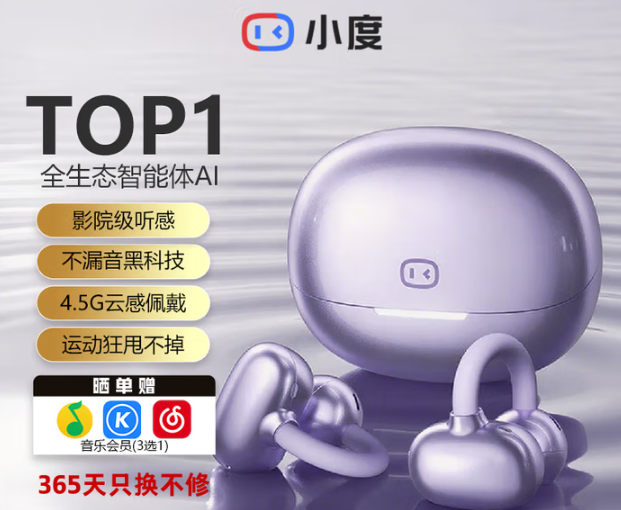 • 小度 G108 耳机/耳麦 骨传导概念不入耳运动AI通话降噪 紫色