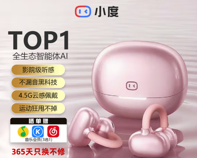 • 小度 G108 耳机/耳麦 骨传导概念不入耳运动AI通话降噪 粉色