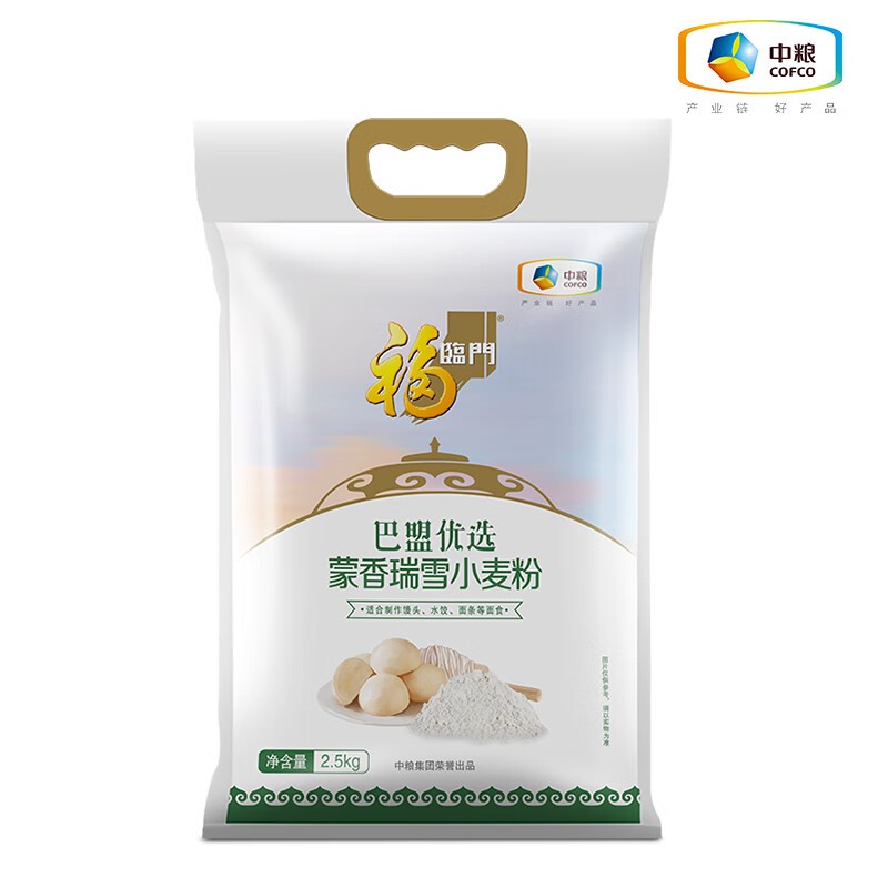 • 福临门 2.5kg 小麦面粉 巴盟优选蒙香瑞雪小麦粉2.5kg饺子面条馒头粉 1袋
