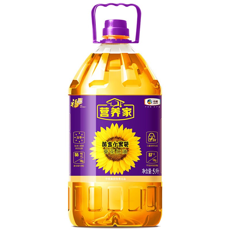 福临门 HJHK5 葵花油 中粮福临门营养家黄金小黑葵葵花仁油5L