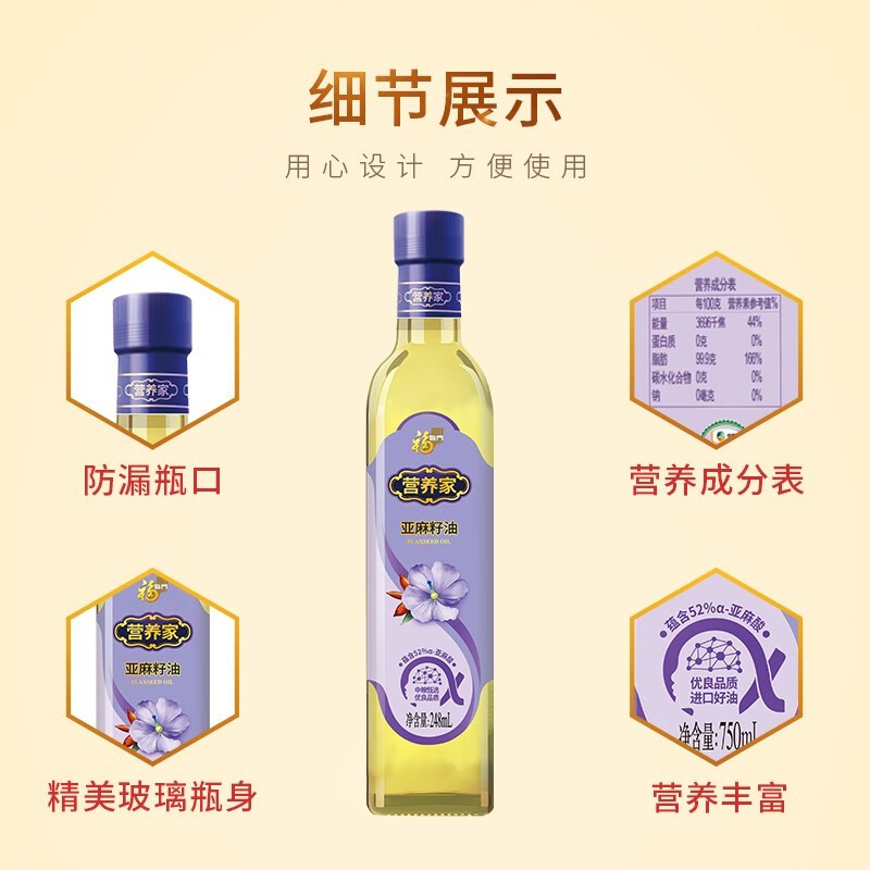 福临门 YYYMAZ248 冷榨亚麻籽油 中粮福临门营养家亚麻籽油248ml