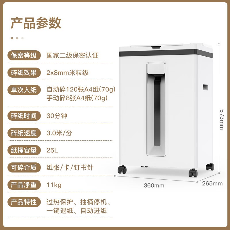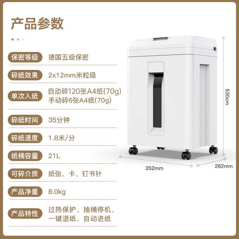 机 5级高保密办公商用粉碎机(全自动120张 持续35分钟 21L)
