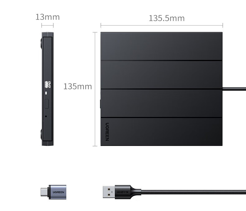 绿联/UGREEN CM138 光驱 8倍速 USB外置光驱刻录机DVD 移动光驱 外置刻录一体