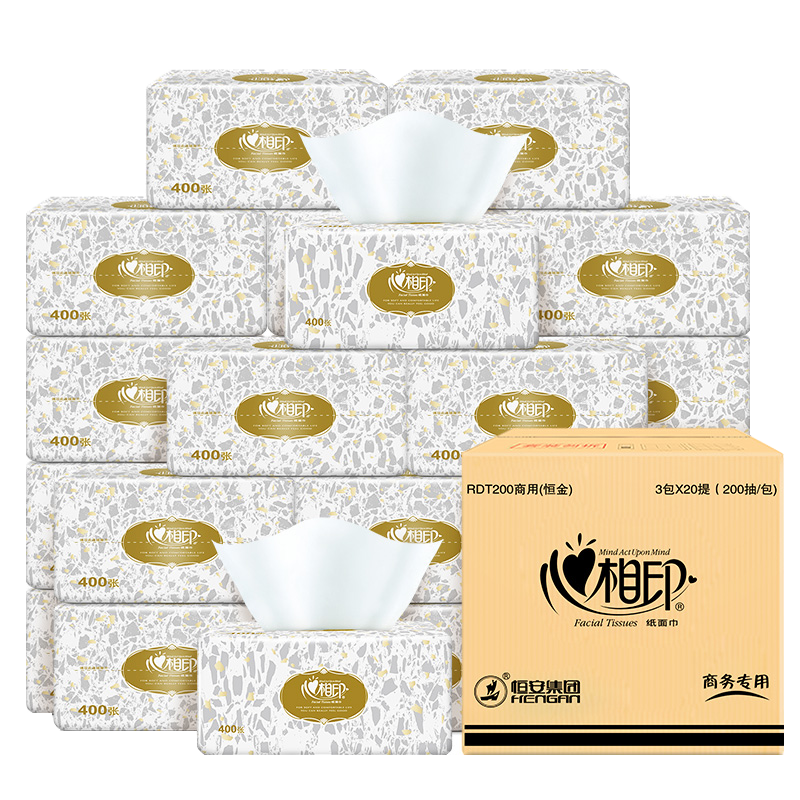 心相印/MindActUponMind RDT200 软包抽取式面纸 (箱装)商用恒金塑装纸面巾(60包)