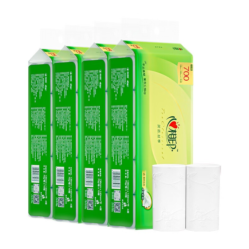 心相印/MindActUponMind 4RW710 卷类卫生纸 心相印茶语丝享系列70克10粒装四层无芯卷纸*4提