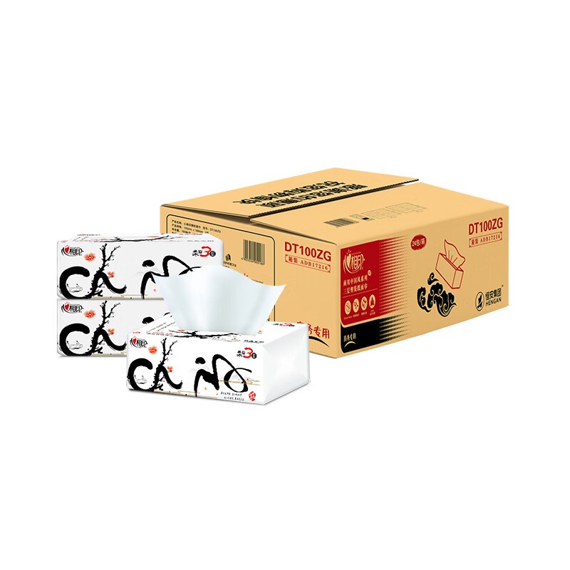 心相印/MindActUponMind DT100 软包抽取式面纸 商用中国风系列三层塑装纸面巾(24包)