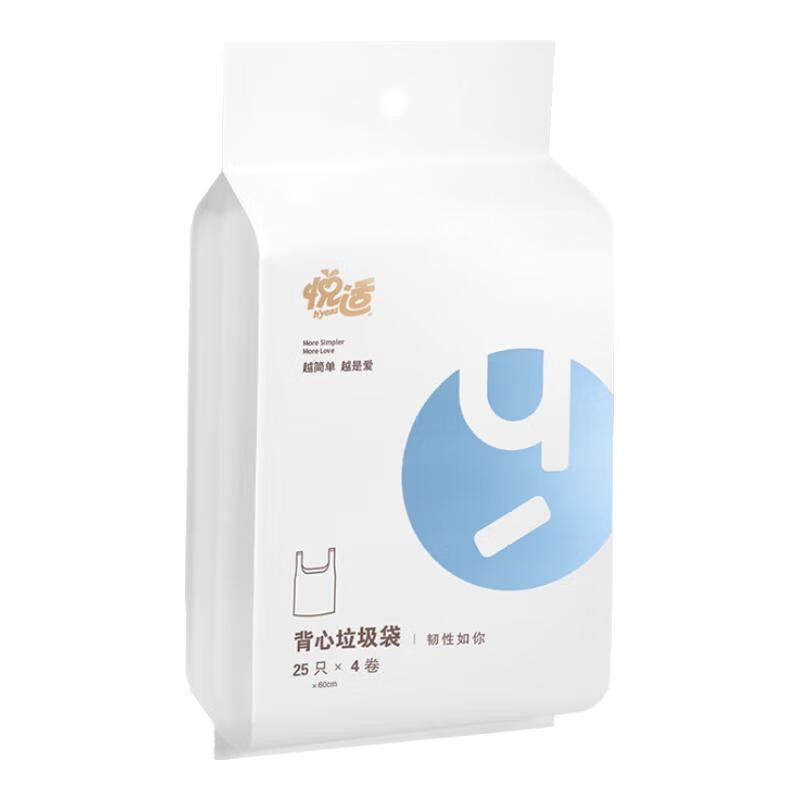 悦适/h\'yeas QZBKB100 塑料制品 悦适背心式清洁袋垃圾袋黑色四卷(45cm*60cm)100只装*2包