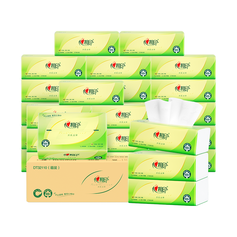 心相印/MindActUponMind DT32110 软包抽取式面纸 心相印茶语丝享系列27包110抽三层塑料纸面巾(M码)