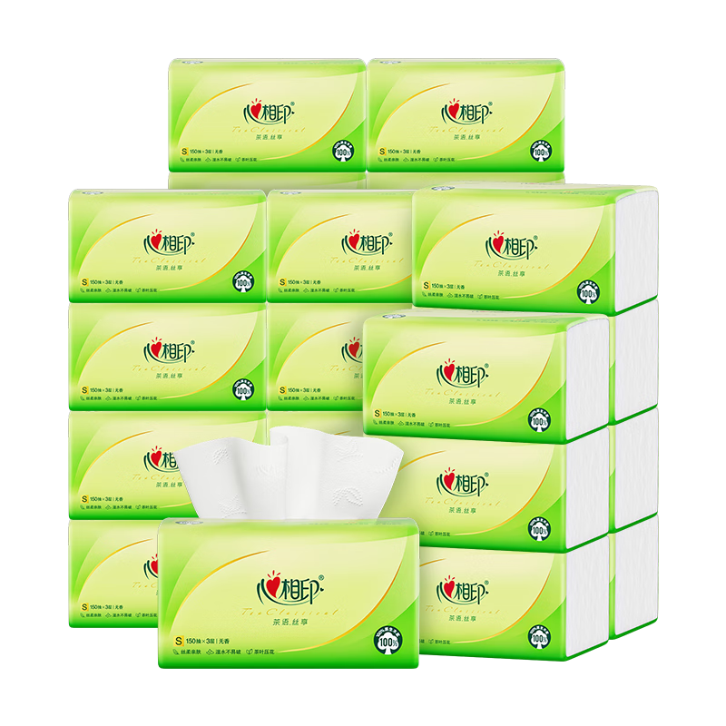 心相印/MindActUponMind DT15150 软包抽取式面纸 心相印茶语丝享系列150抽*24包三层塑装纸面巾