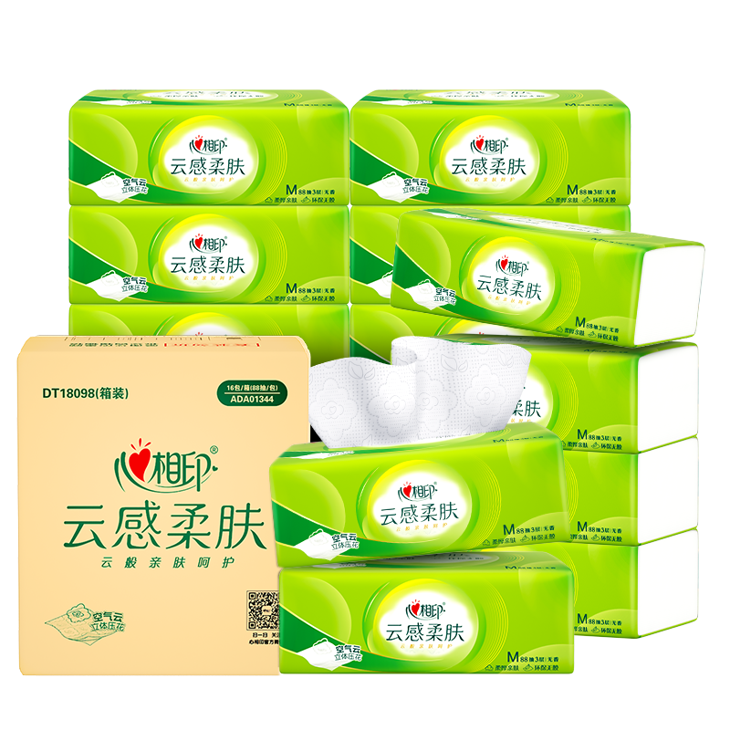 心相印/MindActUponMind DT18098 软包抽取式面纸 云感88抽16包装三层立体压花塑装纸(M码)
