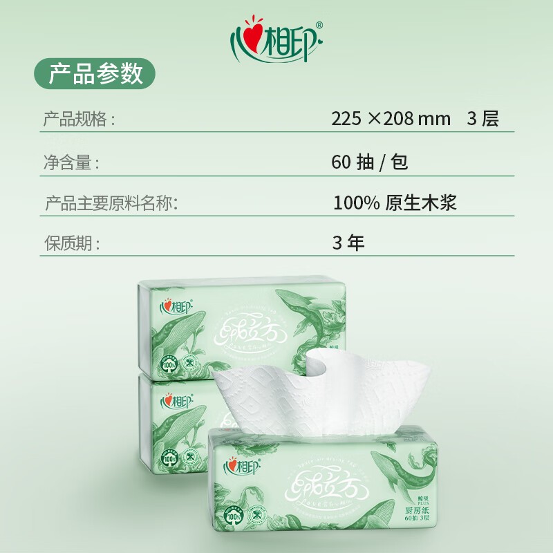心相印/MindActUponMind TKDT1060 软包抽取式面纸 心相印绒立方60抽9包塑装厨房纸巾
