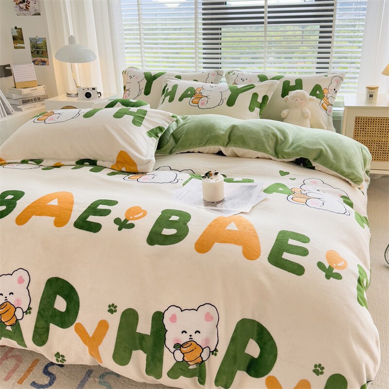 啄木鸟 ZMN-NNR005 被子/被单 牛奶绒四件套-字母兔子
