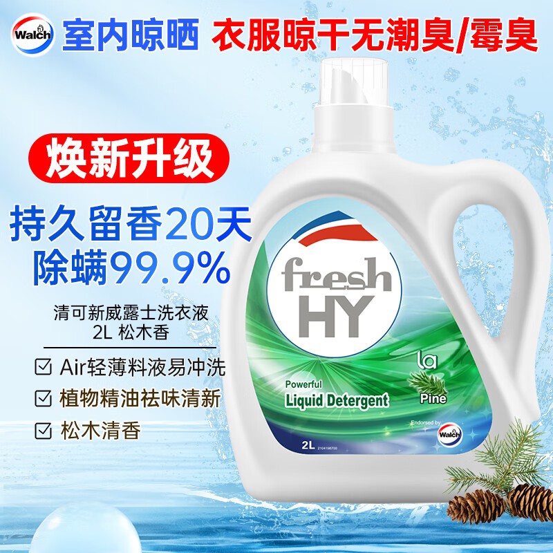 威露士/Walch 2L 洗衣液/洗衣粉 清可新洗衣液松木香2L/瓶 除菌除螨除霉快洗去污渍 持久留香