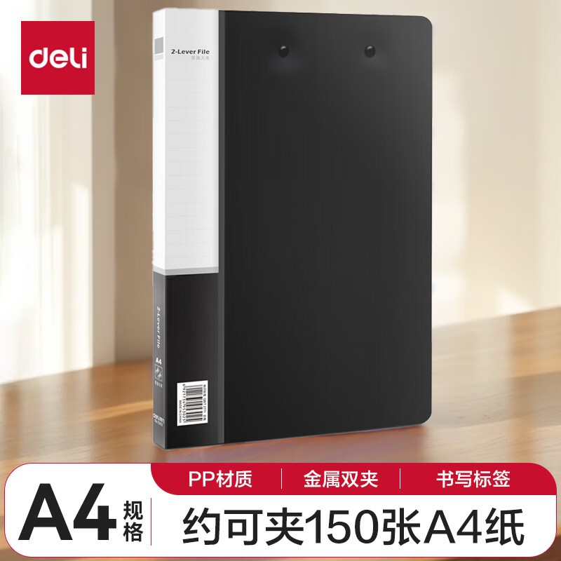得力/deli 5302 文件夹 A4金属双强力夹资料册文件夹办公用品大容量 黑色