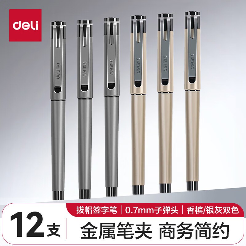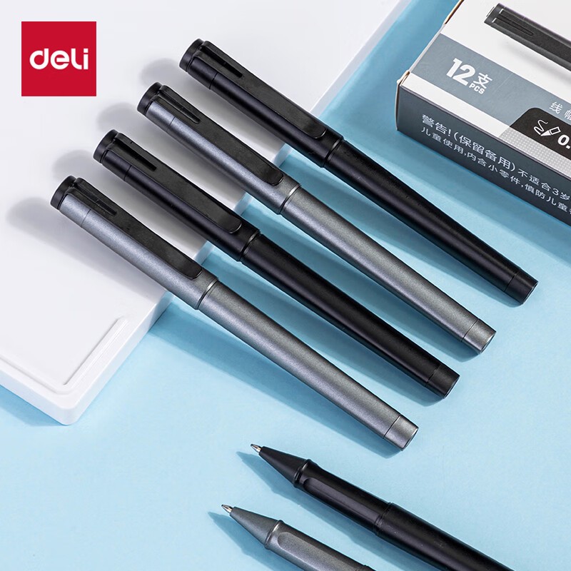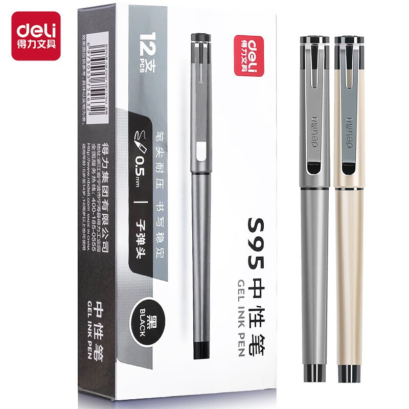 得力/deli S95 书写用笔类用具 办公中性笔高档水性笔商务笔办公笔 【商务款子弹头-黑/0.5mm】12支装