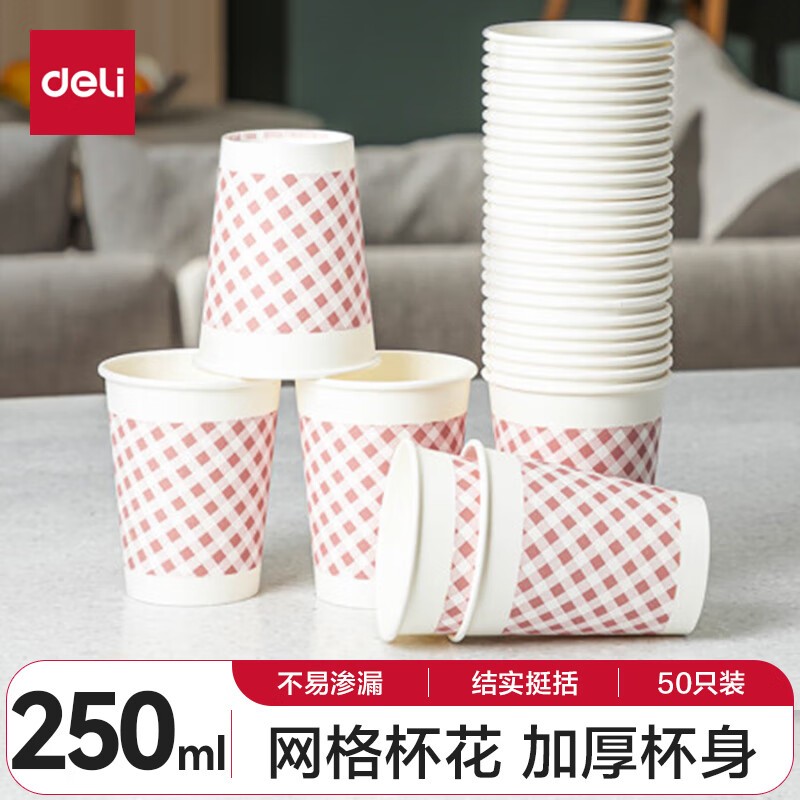 得力/deli 9570 一次性杯子 )250ml(9盎司)加厚一次性杯子 水杯/纸杯 50只装
