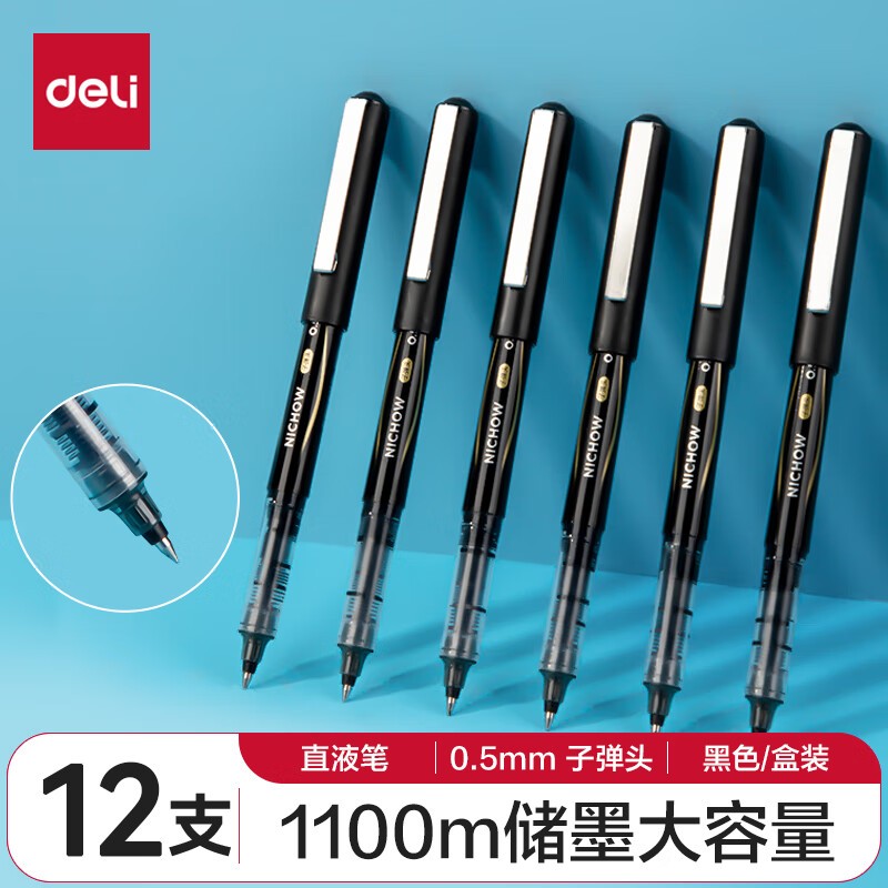 得力/deli 656-Z1 书写用笔类用具 直液笔签字笔 0.5mm子弹头办公商务中性笔走珠笔 水笔会议笔 黑色 12支/盒S656-Z1