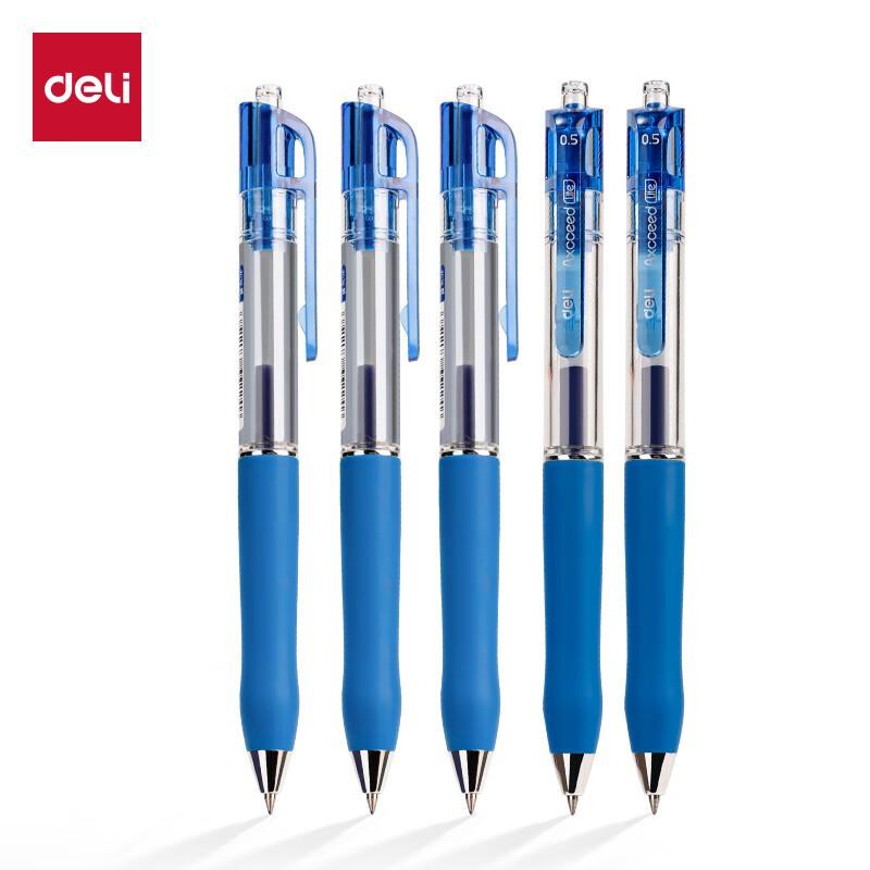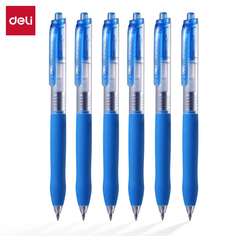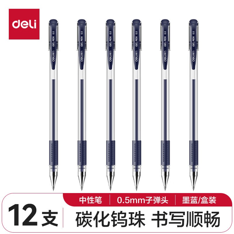 • 得力/deli S12 书写用笔类用具 按动中性笔签字笔 0.5mm子弹头办公学生中高档经典办公按动笔 S12 蓝色12支/盒