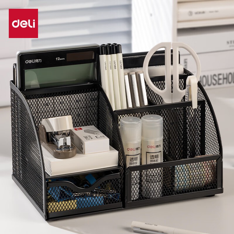 • 得力/deli 9200 收纳包 创意金属网纹办公笔筒 多功能七格办