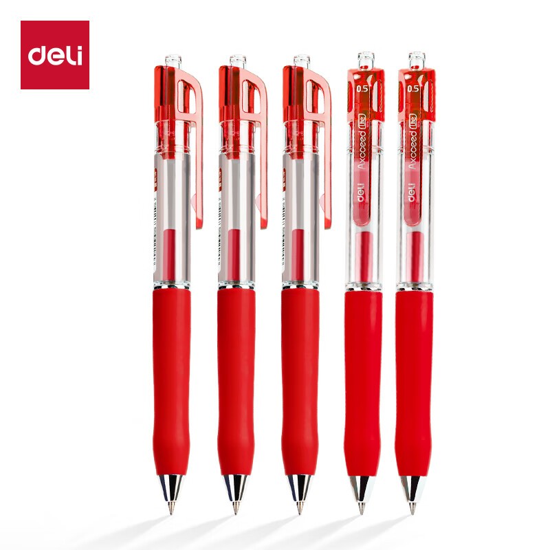 • 得力/deli S07 书写用笔类用具 臻顺滑中性笔签字笔 0.5mm子弹头按动笔水笔 办公用品学生中性笔 红色12支/盒S07