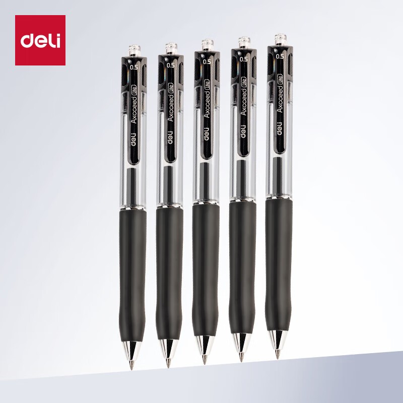 • 得力/deli A12 书写用笔类用具 乐素臻顺滑中性笔签字笔 0.5mm子弹头按动笔水笔 金属喷漆 黑色 12支/盒