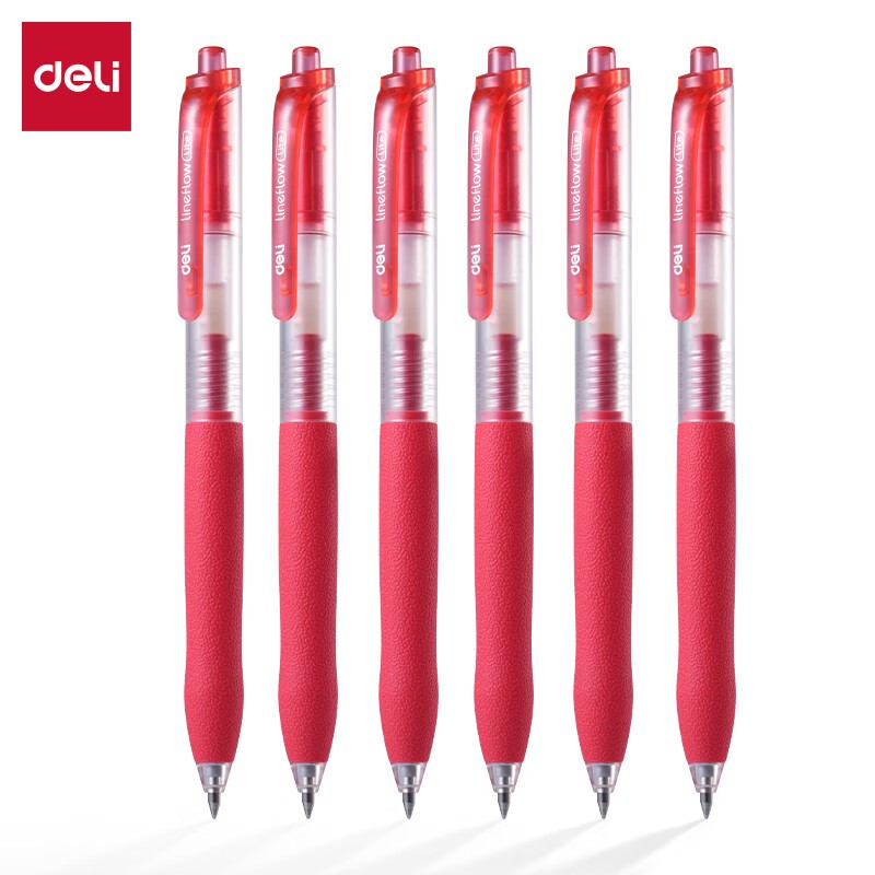 • 得力/deli S12 书写用笔类用具 按动中性笔签字笔 0.5mm子弹头办公学生中高档经典办公按动笔 S12 红色12支/盒