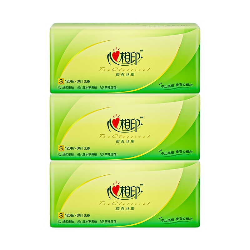 心相印/MindActUponMind DT15120 软包抽取式面纸 茶语丝享系列120抽装三层塑装纸面巾3包(包装)*5提