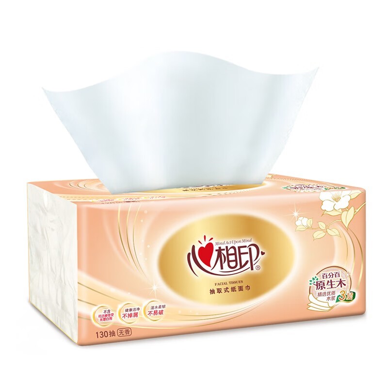 心相印/MindActUponMind DT58100 软包抽取式面纸 金装金典100抽三层塑装纸面巾3包装 5提