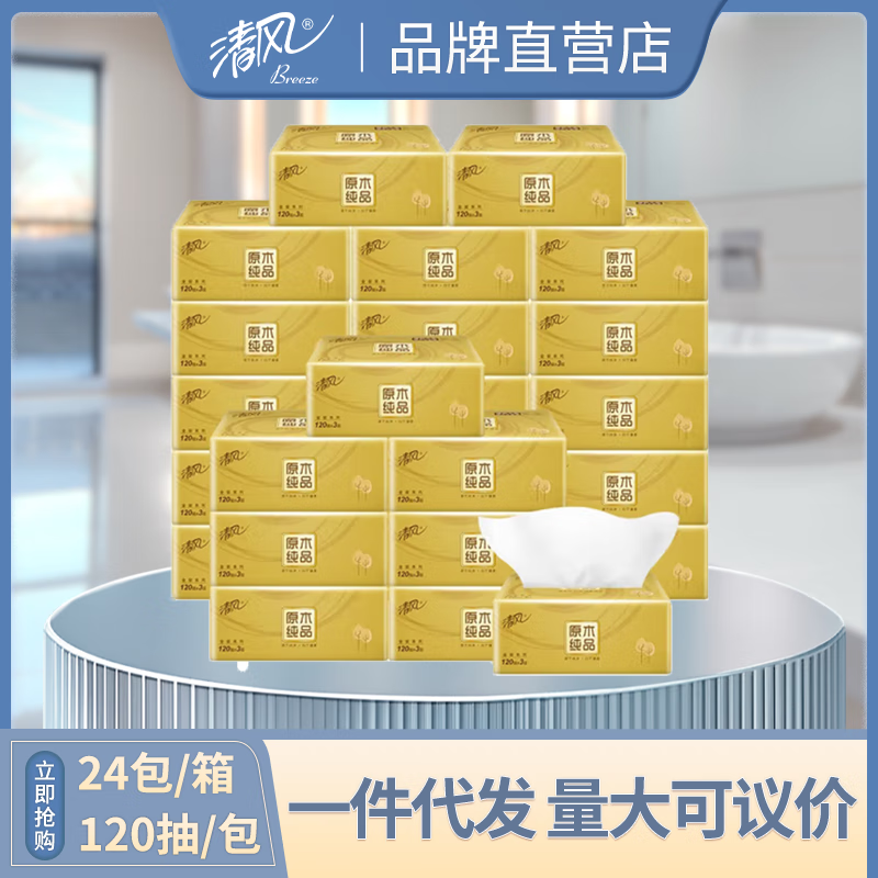 清风 AR44ZSY3 软包抽取式面纸 纸巾A 原木金装系列120抽24包