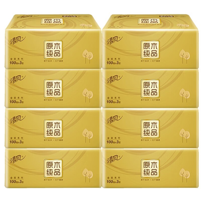 清风 AR42GZZ2 软包抽取式面纸 原木金装系列 100抽抽取式面纸 AR42GZZ2(24包/箱)
