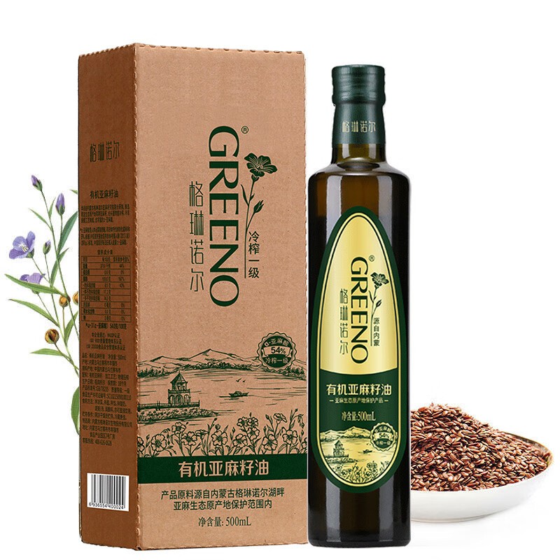 • 格琳诺尔 500 冷榨亚麻籽油 有机亚麻籽油一级冷榨食用油月子油适用孕妇宝宝500ml
